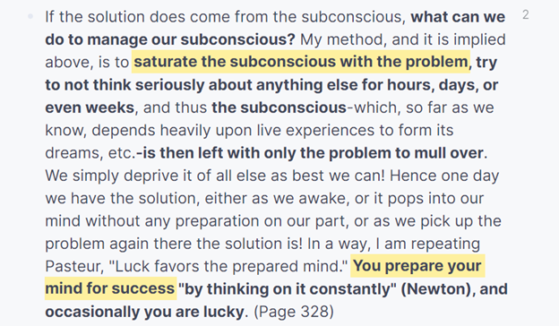 Spend more time thinking about a problem by getting your subconscious mind to also think about it. This will happen if you force yourself to only think about one key problem for a period of hours, days, or weeks.